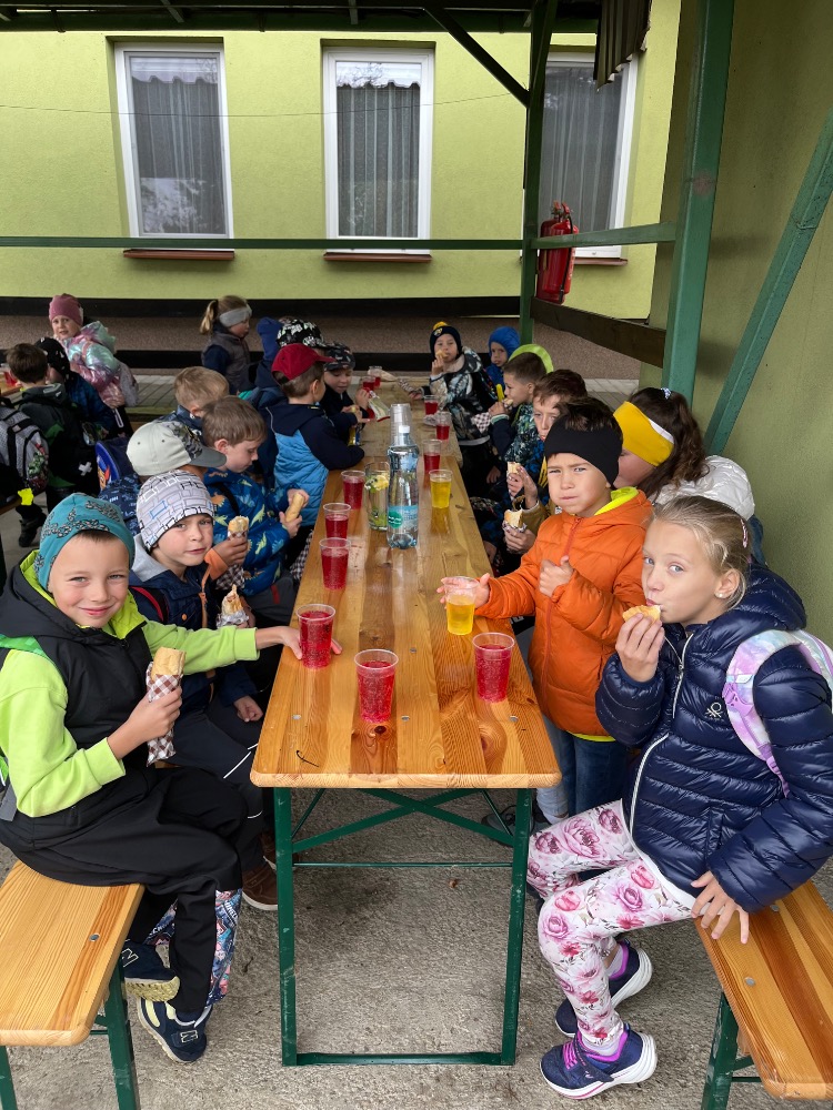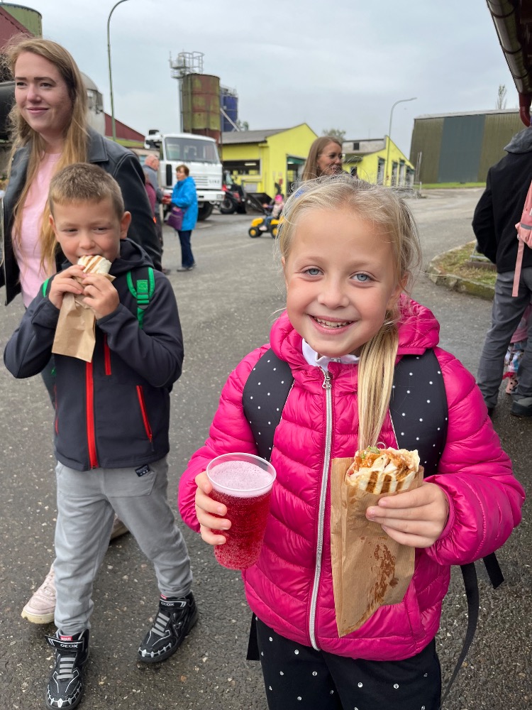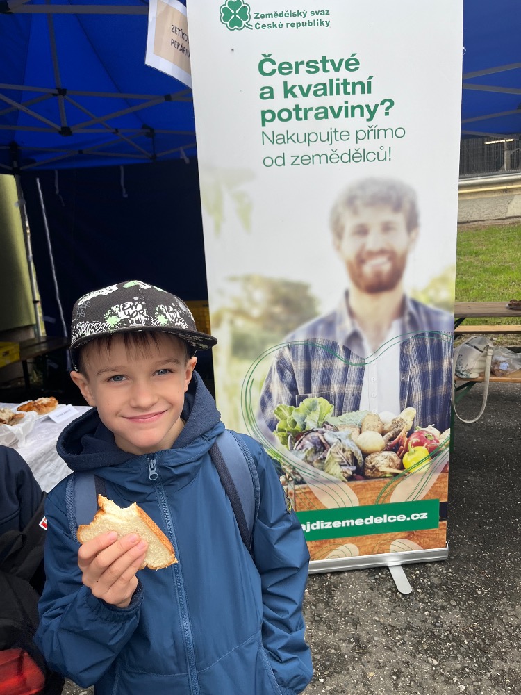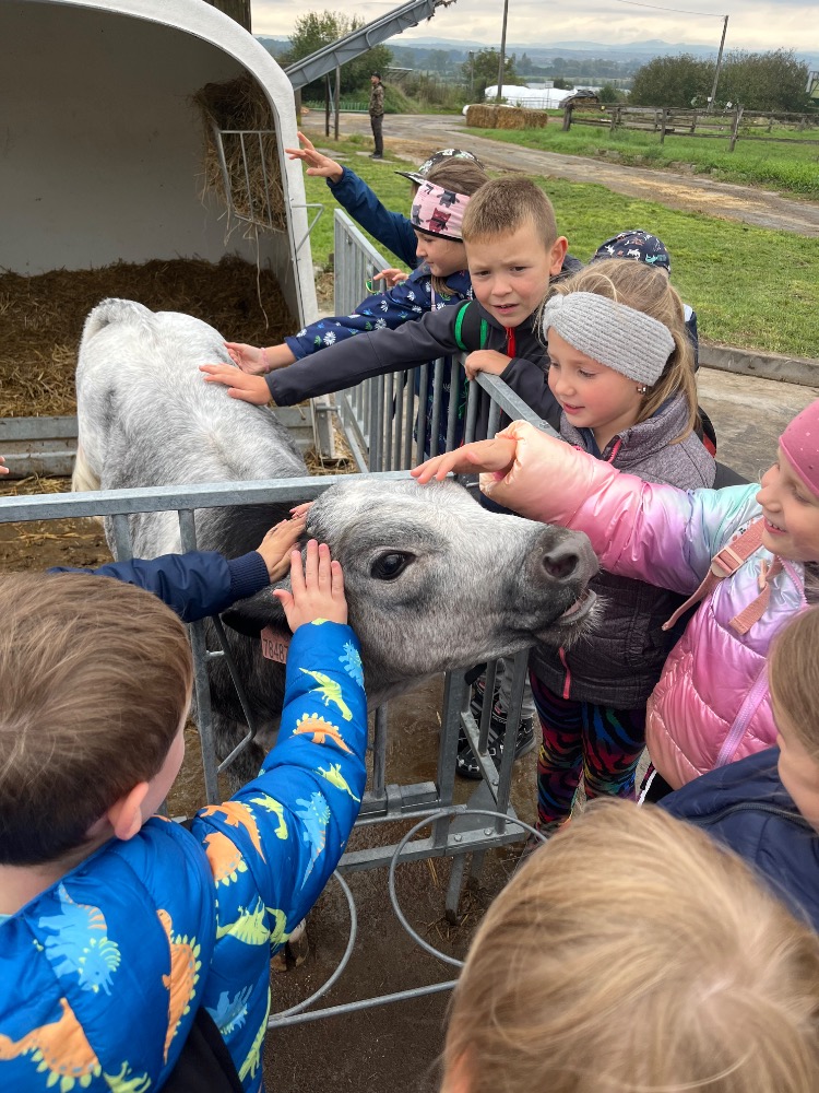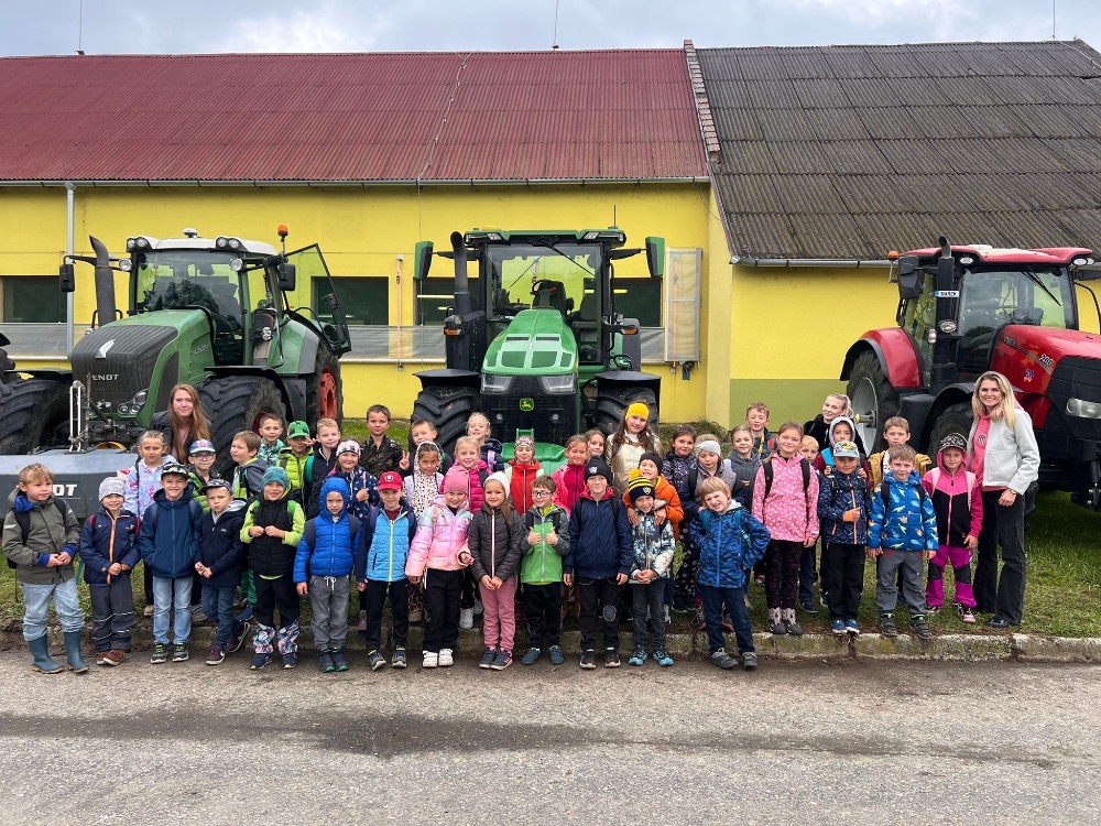 Naši malí badatelé ze školní družiny vyrazili v pátek 26. 9. 2025 za dobrodružstvím do zemědělského podniku TOPAGRA v Topolné, kde na ně čekal bohatý program – komentovaná prohlídka stájí, ukázka moderní zemědělské techniky, ochutnávka regionálních produktů, skákací hrad, naučný koutek a v neposlední řadě jsme si pochutnali na párku v rohlíku, tortille, vdolečcích a točené malinovce.
