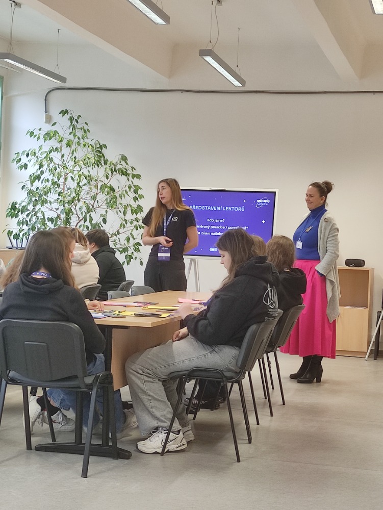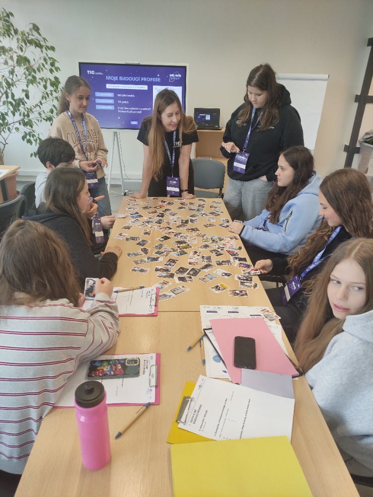 Ve třetí části probíhala skupinová práce. Společně hledali a formulovali kritéria, podle kterých se budou rozhodovat při výběru střední školy. Zamýšleli se nad tím, co je pro ně důležité – zda například obsah studia, možnost dalšího uplatnění, prostředí školy či osobní zájmy. Vyzkoušeli si i virtuální realitu a závěrečnou aktivitou byla práce ve dvojicích, kdy si žáci zahráli na reportéry a pokládali svým spolužákům otázky týkající se výběru školy a budoucího povolání.