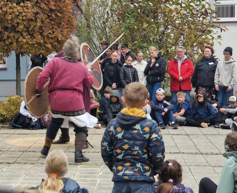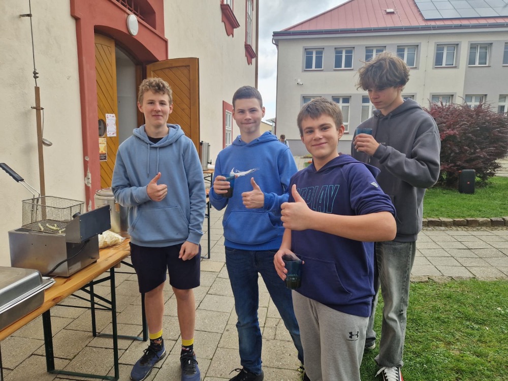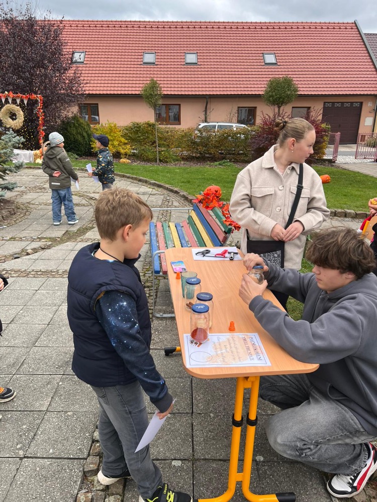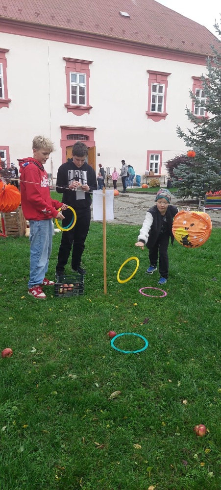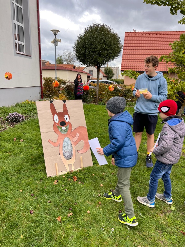 Naše škola se 23. 10. 2025 rozezněla smíchem a vůní podzimu. Děti procházely stanovišti s úkoly, kde plnily nejrůznější výzvy – házení šiškou na cíl, poznávání přírodnin, soutěže o nejdelší jablečnou slupku, vytváření svítících soviček, náhrdelníků a mnoho dalšího. A protože po práci roste chuť k jídlu, nechyběla ochutnávka voňavých bramboráků, hranolek, dýňové polévky, teplého čaje, upečených buchet a sladkých odměn. Program byl obohacen o šermířské vystoupení a ohňovou show skupiny Fajráci.
