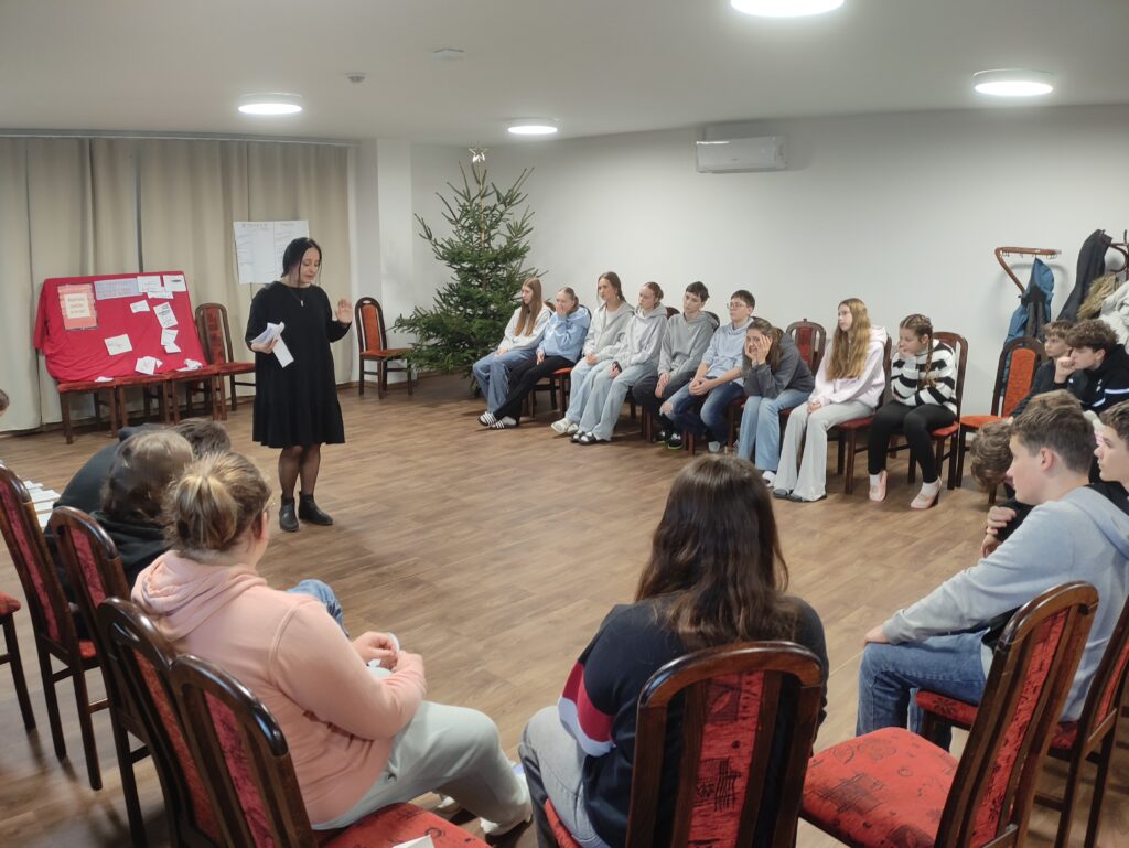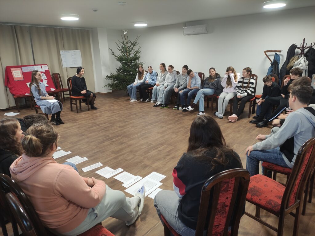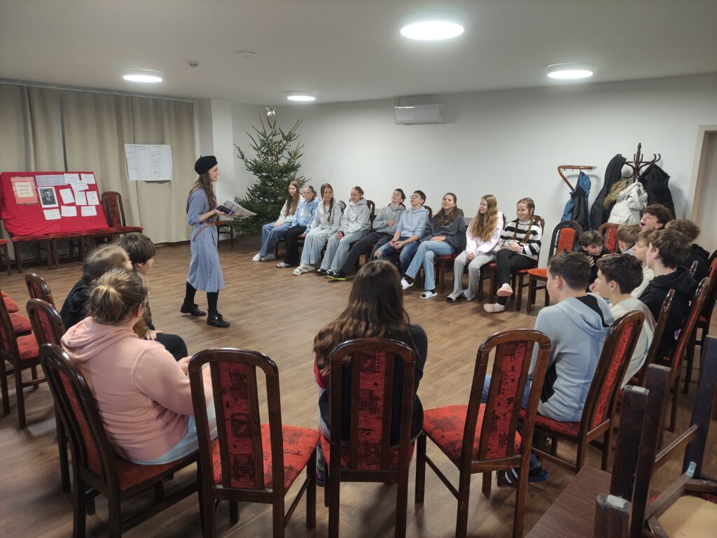 Naši osmáci a deváťáci měli možnost zažít na vlastní kůži, jaké to bylo žít v době komunismu. Díky lektorkám ze Slováckého divadla, které si připravily interaktivní workshop s názvem „Schody nesvobody“, mohli naši žáci nahlédnou do tehdejšího života, na chvíli se stát součástí příběhů, objevovat minulost, ale i současnost. Workshop byl plný různých aktivit, a tak bylo o hry, zábavu, ale místy i napětí postaráno. Seznamovali se s tehdejším režimem, osobnostmi, ale i životem prostých lidí nebo si vyzkoušeli, jak to tehdy vypadalo ve třídě. Žáky tento program velmi zaujal a rozhodně si z něj odnesli mnoho poznatků a získali povědomí o tehdejší době.