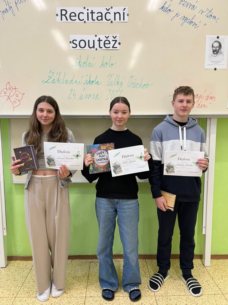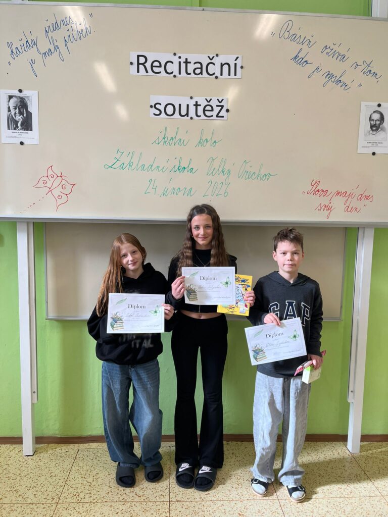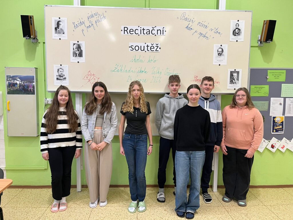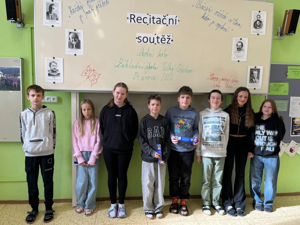 Všem recitátorům děkujeme za přípravu a účast. Vítězům blahopřejeme a přejeme jim hodně úspěchů v okrskovém kole, které se uskuteční v úterý 10. března 2026 na Základní škole v Malenovicích.