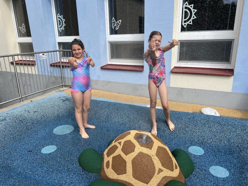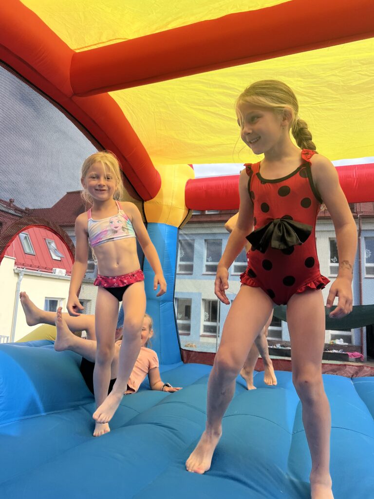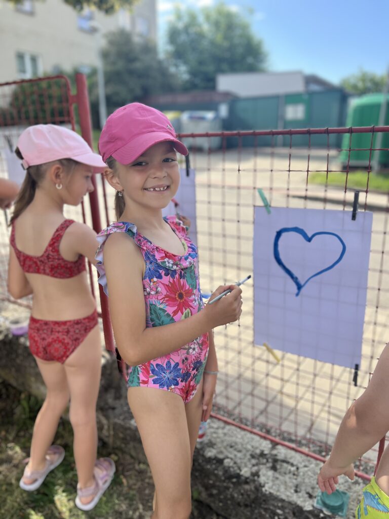 Ve středu 25. června jsme si užili krásné společné dopoledne s předškoláky na zahradě mateřské školy. Čekalo nás slunečné počasí, dobrá nálada a spousta zábavy. Děti si užily vodní radovánky – nechyběly vodní pistole, oblíbená vodní skluzavka, mlhoviště, malování na plotě a skákací hrad. Velkým lákadlem byla také výroba vlastních odznáčků.